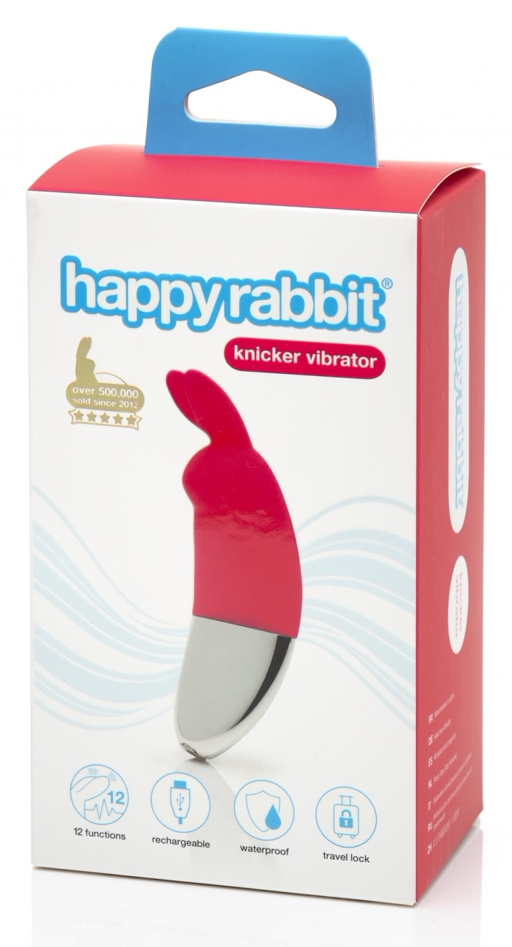 Vibrator pentru chiloți Happy Rabbit: discret, reîncărcabil, cu 12 moduri de vibrație. Urechile flexibile țintesc clitorisul, carcasa din silicon este rezistentă la apă. Conține blocare de călătorie și încărcare USB.