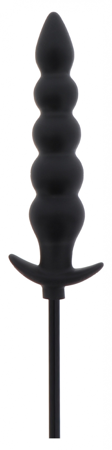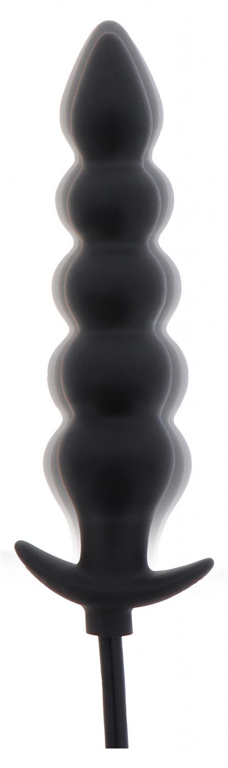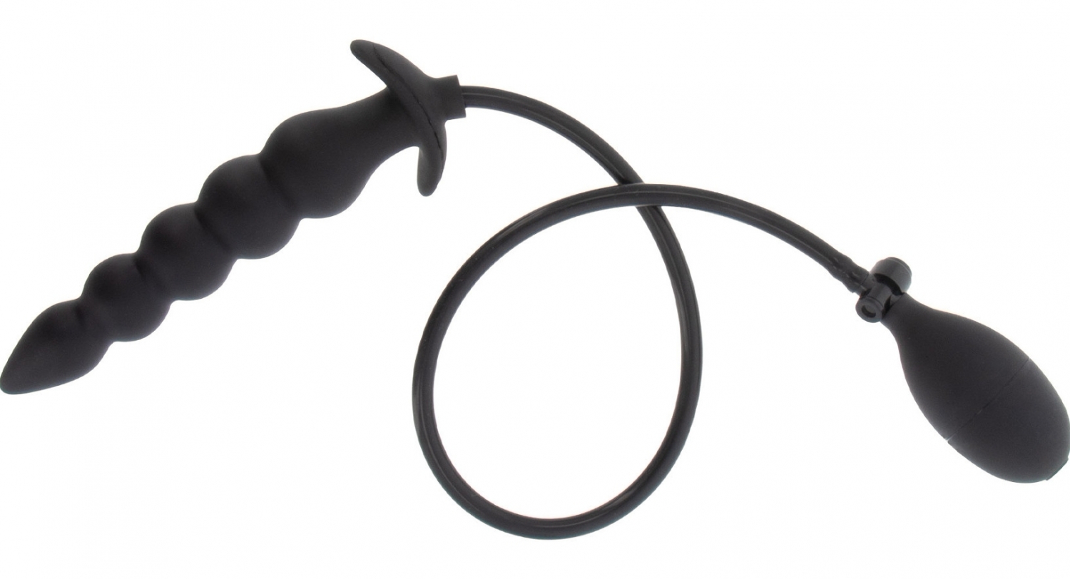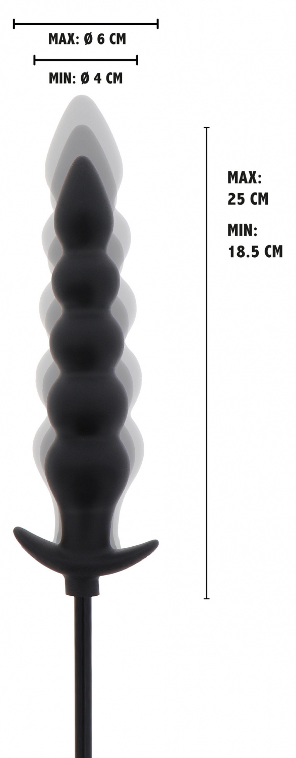 Plug anal gonflabil, din silicon 100% — striat, cu supapă rapidă de eliberare. Inserabil 18.5–23 cm, diametru 4–5.5 cm. Ajustează umflarea pentru senzaţie de plenitudine. Culoare: negru. Marcă: Hidden Desire.