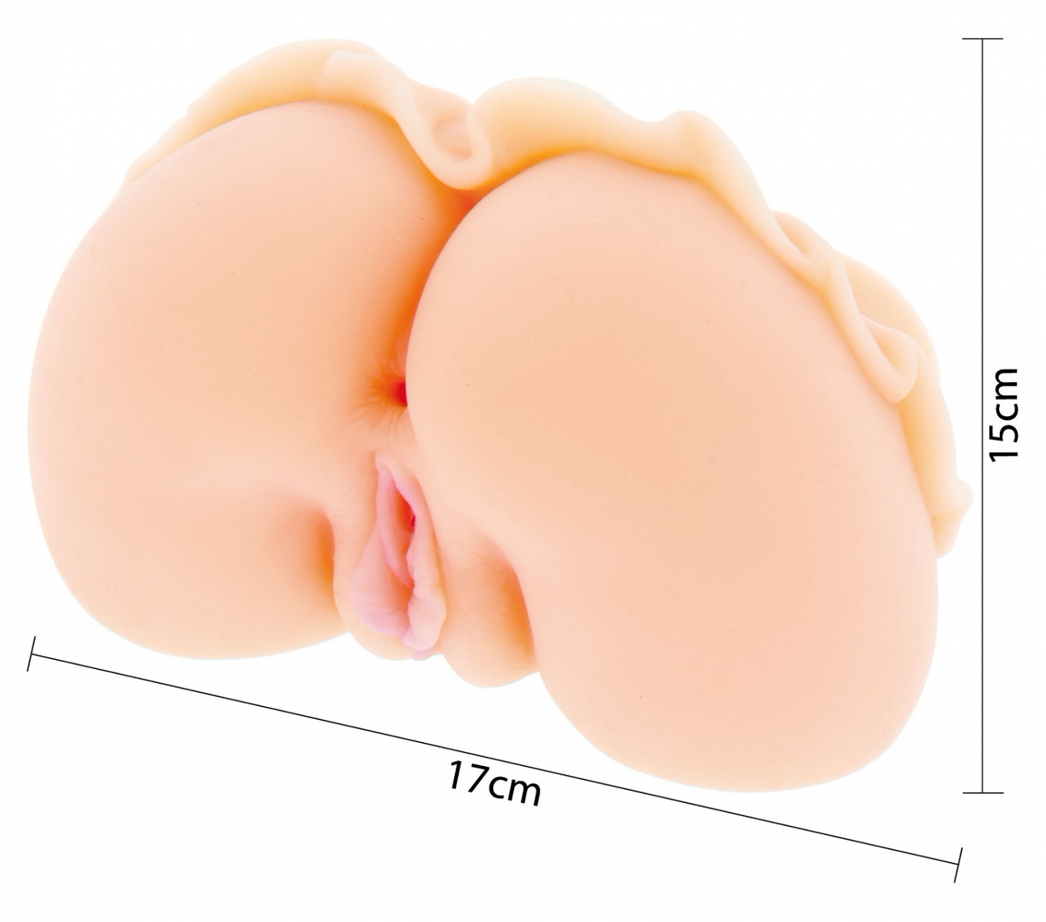 Masturbator realist din colecția premium, cu două deschideri (vaginală și anal) și inel de strângere pentru senzații intense. Material Realistic Love Skin, mătăsos și ușor de curățat. Ton piele deschis.