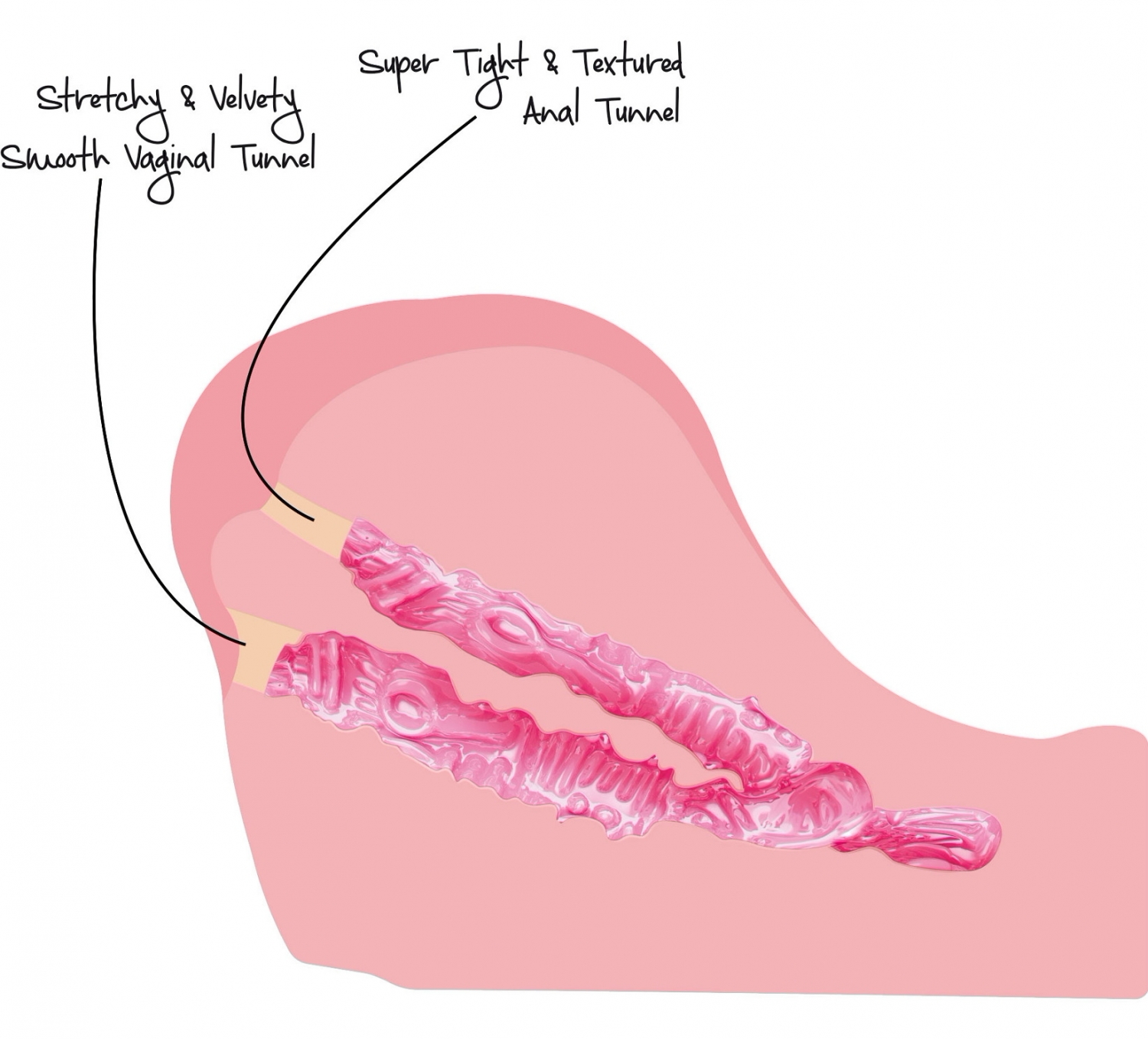 Are două deschideri distincte — vaginală și anală — pentru varietate și adaptare la preferințele personale. Inelul de strângere integrat sporește un plus de compresie și tărie la fiecare mișcare.
