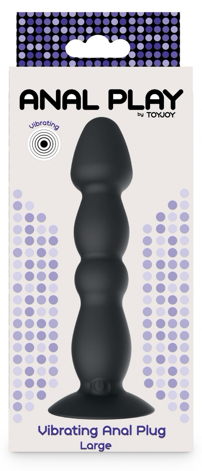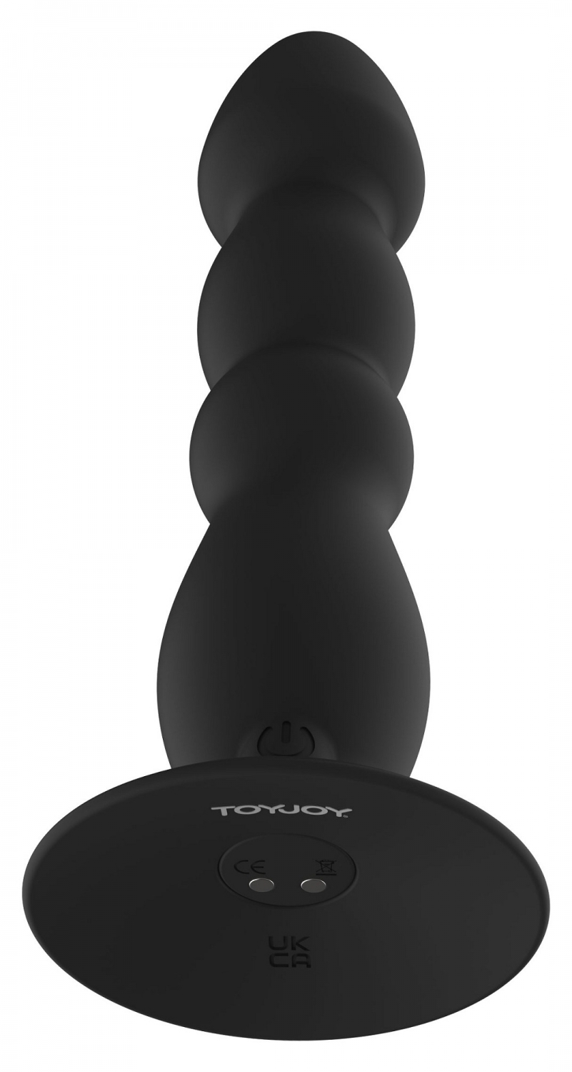 Plug anal vibrant ToyJoy Large din silicon, extindere totală 17 cm (inserabil 15 cm), calibru 3.8 cm. Reîncărcabil, cu numeroase trepte de vibraţie şi bază flared pentru stabilitate. Culoare: negru.