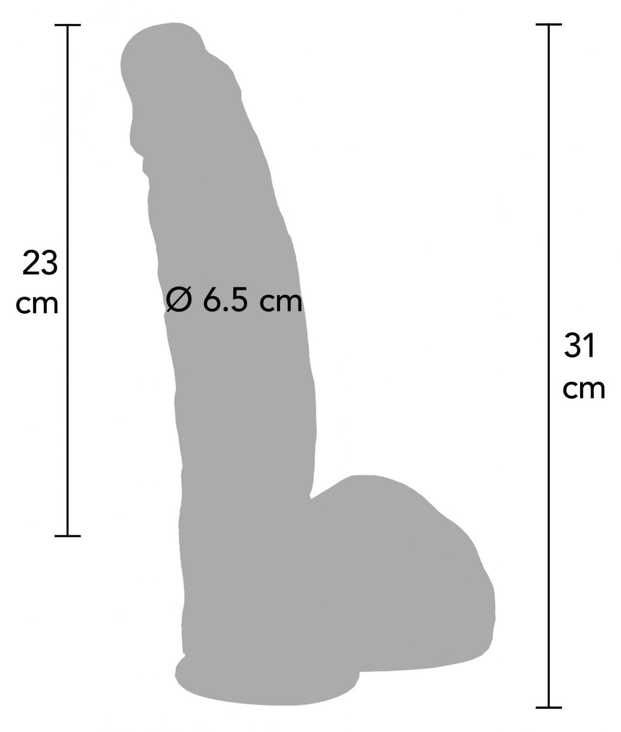Hidden Desire Realist 29 cm, din silicon dual-densitate: exterior moale și nucleu ferm pentru stabilitate. Ventuză integrată pentru stabilizare hands-free. Insertabil 23 cm, calibru 6.5 cm. Material sigur pentru corp, ușor de curățat și întreținut.