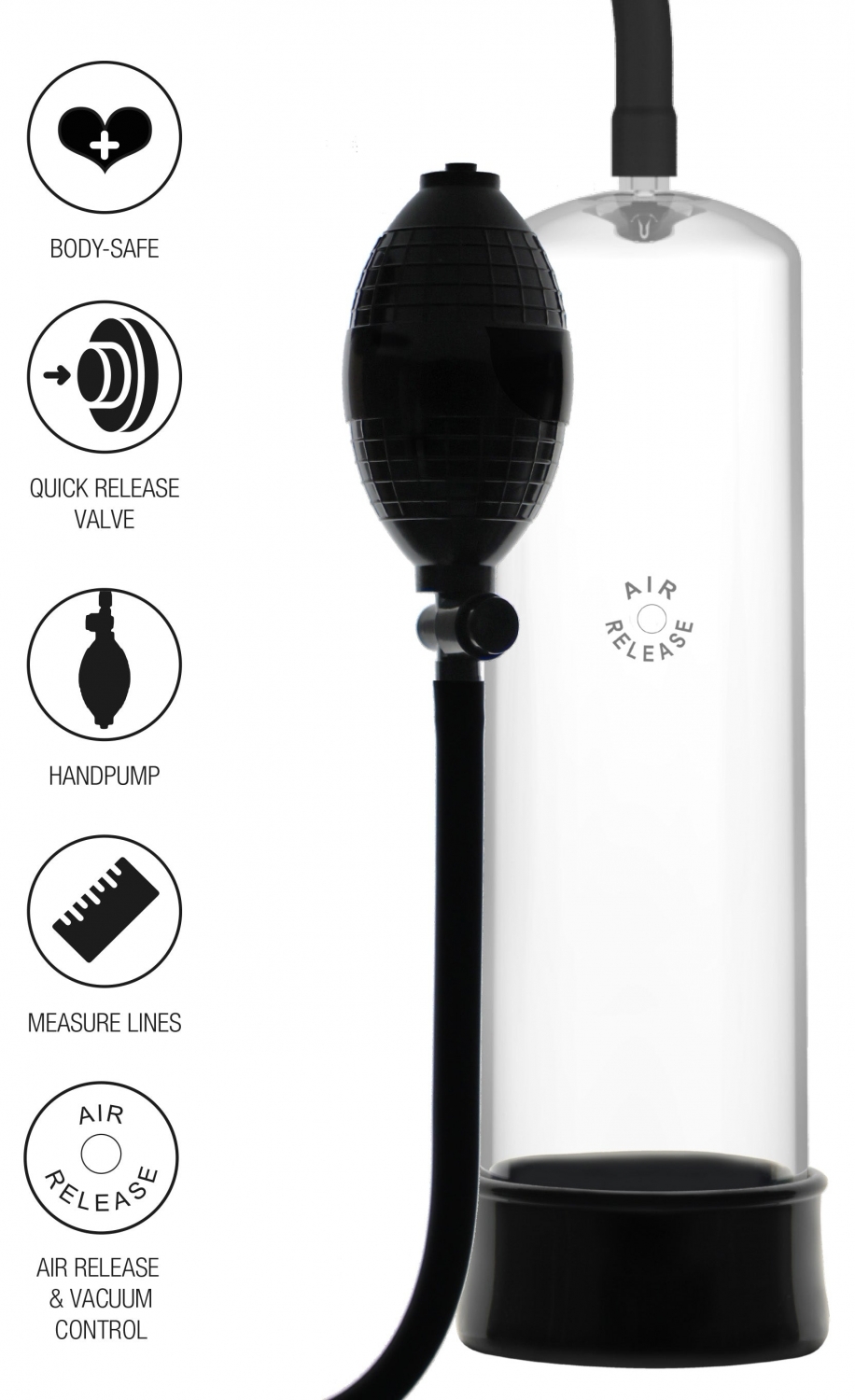 Pompă manuală Hidden Desire Rising Star — control precis al presiunii, design ergonomic optimizat și utilizare discretă. Tub clar și manșon din silicon pentru igienă; reglare treptată cu bilă de pompare. Lipsit de ingrediente electrice.