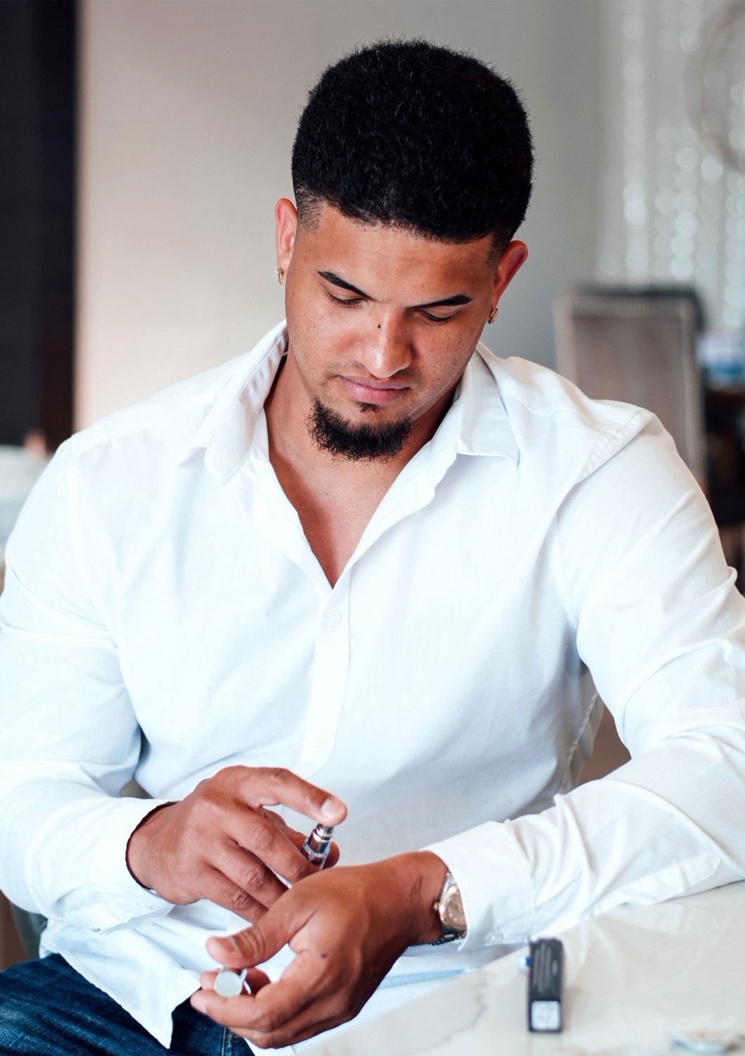 Aplicare recomandată: folosește punctual pe încheieturi sau la baza gâtului pentru un parfum subtile și controlat. Potrivit pentru uz zilnic, când vrei să-ți subliniezi certitudinea și carisma într-un mod natural.