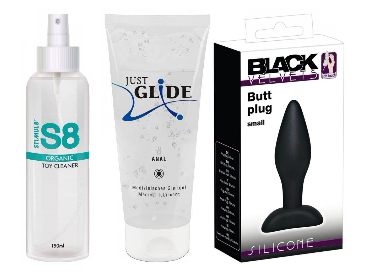 Set complet pentru experiențe anale mai sigure și mai plăcute. Plug din silicon confortabil, agent lubrifiere farmaceutic 200 ml și spray igienizant 150 ml care se folosesc în tandem pentru infiltrație ușoară, protecție și îngrijire — recreere și intensificare a senzațiilor.