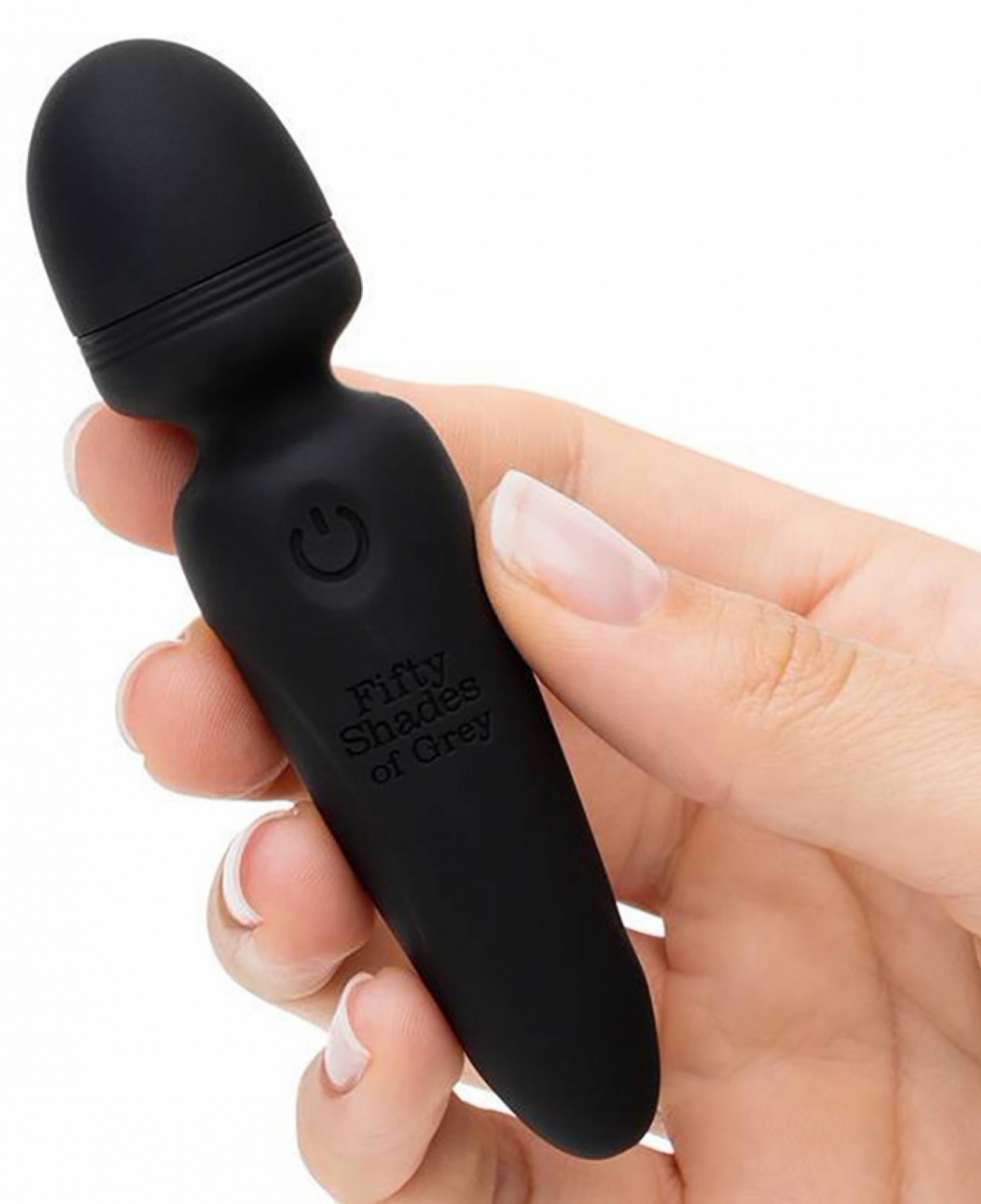 Mini Wand compact din colecția Fifty Shades Of Grey: corp din silicon fin, cap rotund ferm și 20 moduri de vibrație. Reîncărcabil USB, autonomie aprox. 80 minute, husă din plastic reciclat. Corespunzător pentru uz extern; purificați și folosiți lubrifiant pe bază de apă.