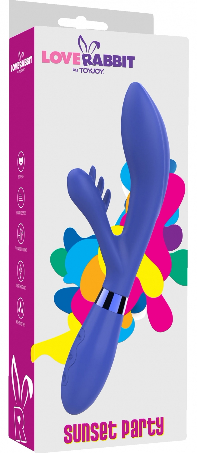 Sunset Party Vibrator din colecția Love Iepure by TOYJOY este sexy, obraznic și este prevazut cu un ax flexibil stimulator clitoridian. Mov. Lungime: 23cm, mărime inserabila: 10cm, Diametru: 3.8cm