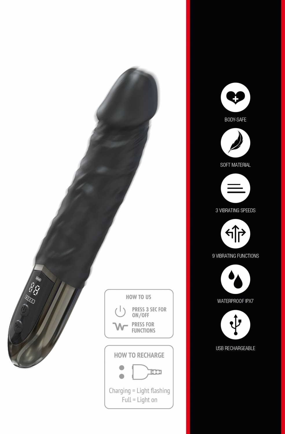 Materialul hipoalergenic și suprafața netedă asigură confort; capul ușor proeminent și venele discrete măresc senzația. Motorul puternic acceptă mai numeroase maniere de vibrație și trepte de viteză pentru varietate.