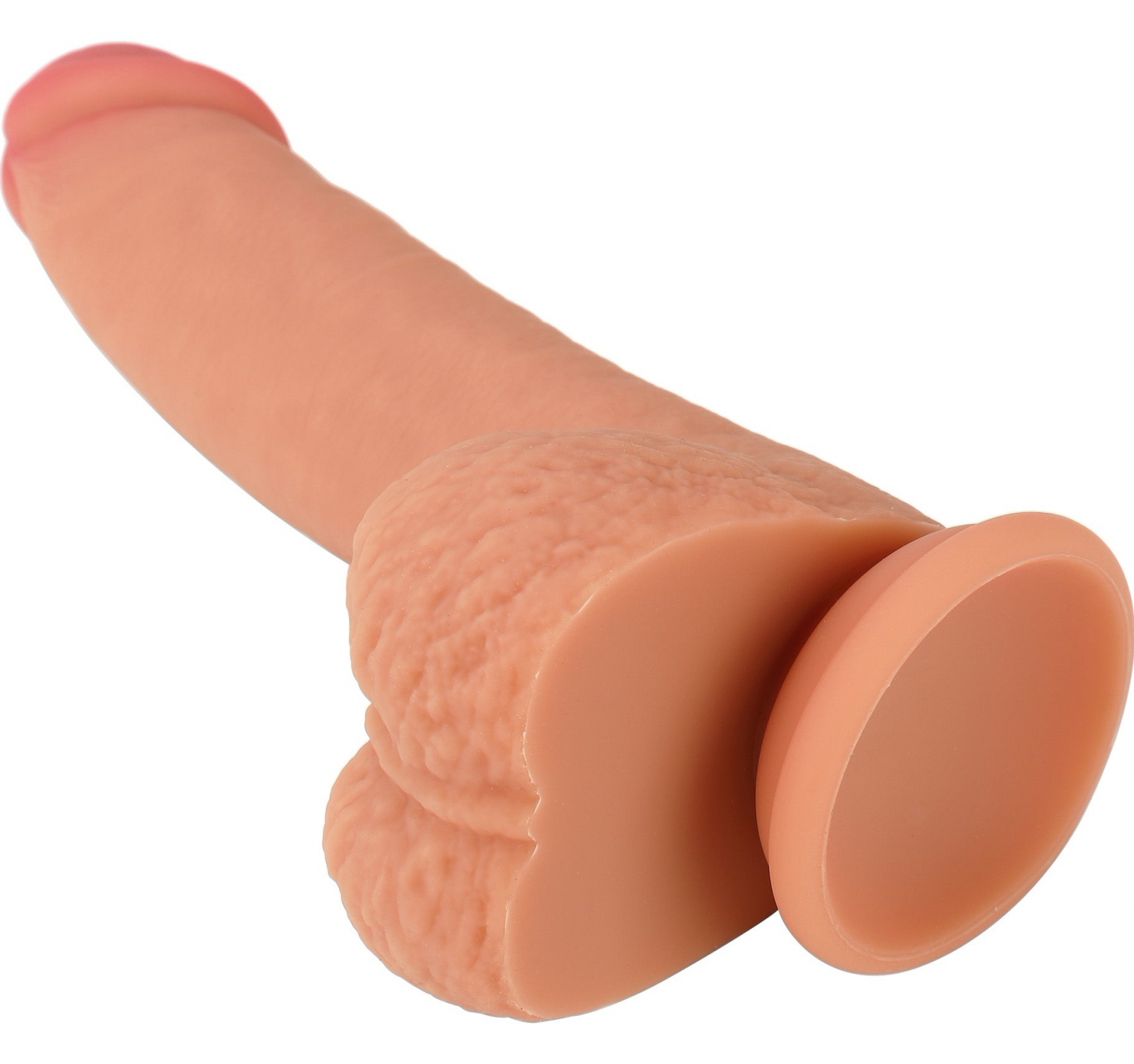 Dong realist 18 cm din silicon lichid cu densitate duală, textură catifelată, vene subtile şi flexibilitate controlată. Corespunzător cu suporturi standard, sigur pentru corp, uşor de curăţat şi depozitat discret.