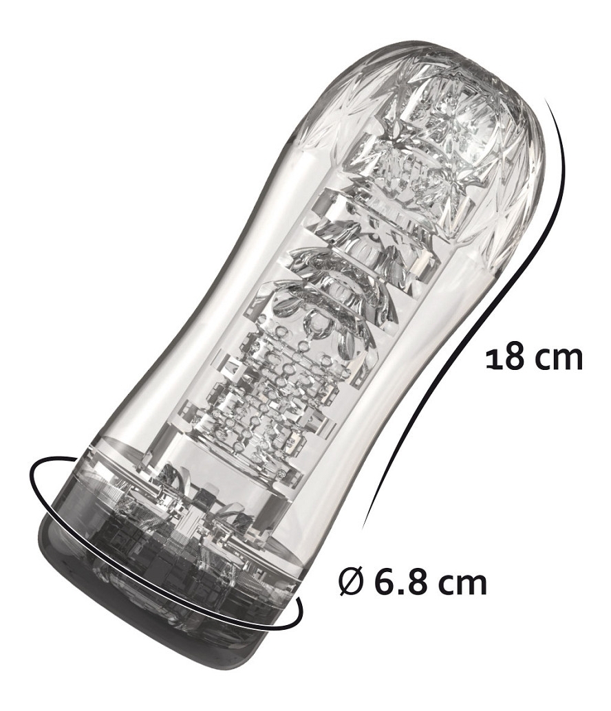 Stroker transparent ToyJoy Hero, 18 cm, cu manșon TPE și carcasă ABS. Reglabil prin orificiul de aer pentru o senzație de vid personalizată. Vizibilitate totală, ușor de curățat. Potrivit cu lubrifianți pe bază de apă.