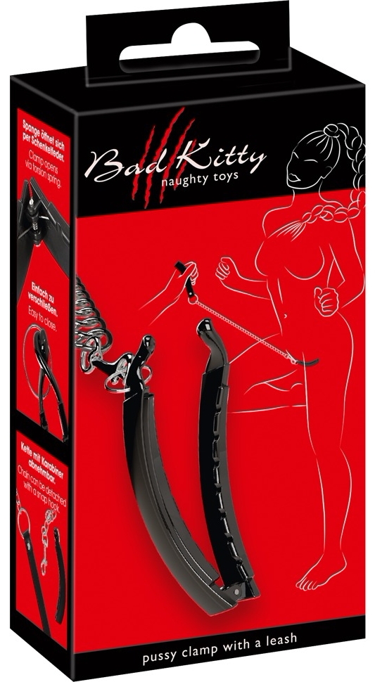Clema intimă Bad Kitty, îndoită ergonomic, se ține ușor cu arc și asigură stabilire stabilă. Lesa metalică detașabilă (85.5 cm) are curea de încheietură din imitație de piele. Concepută din ABS, metal și PU — robustă și fără greutate de întrebuințat pentru jocuri de putere.