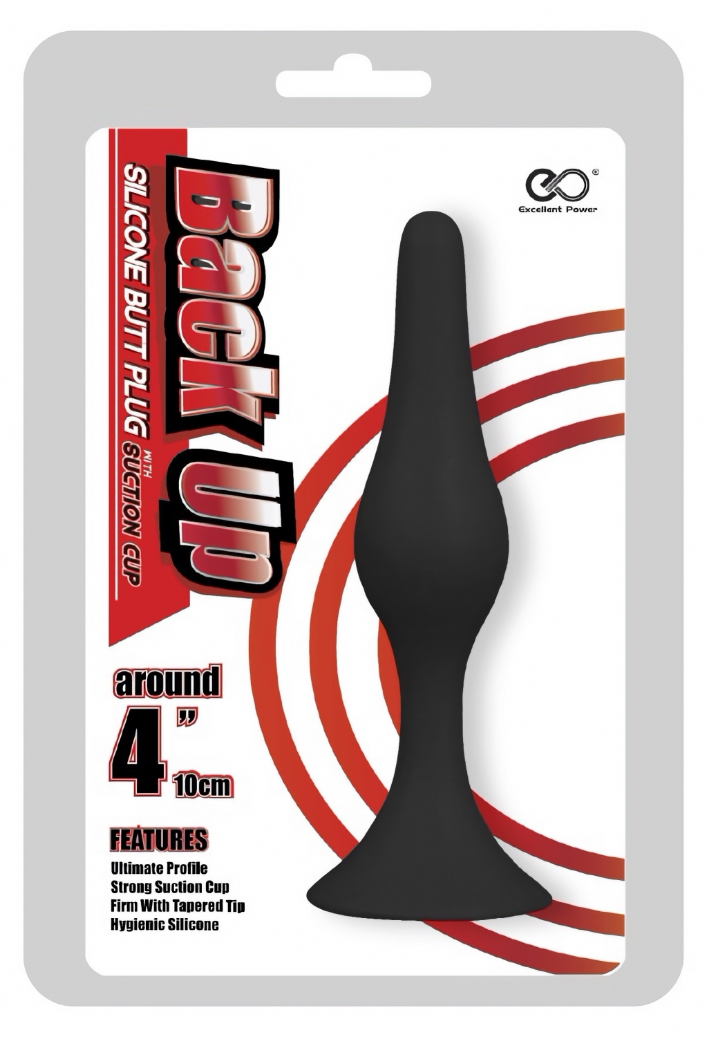 Plug anal NMC Back Up 4, din silicon moale, vârf conic și corp ușor bulbous pentru inserție confortabilă. Gât subțire pentru prindere sigură și bază flared cu ventuză pentru fixaj hands-free. Tenace la apă, ușor de curățat.