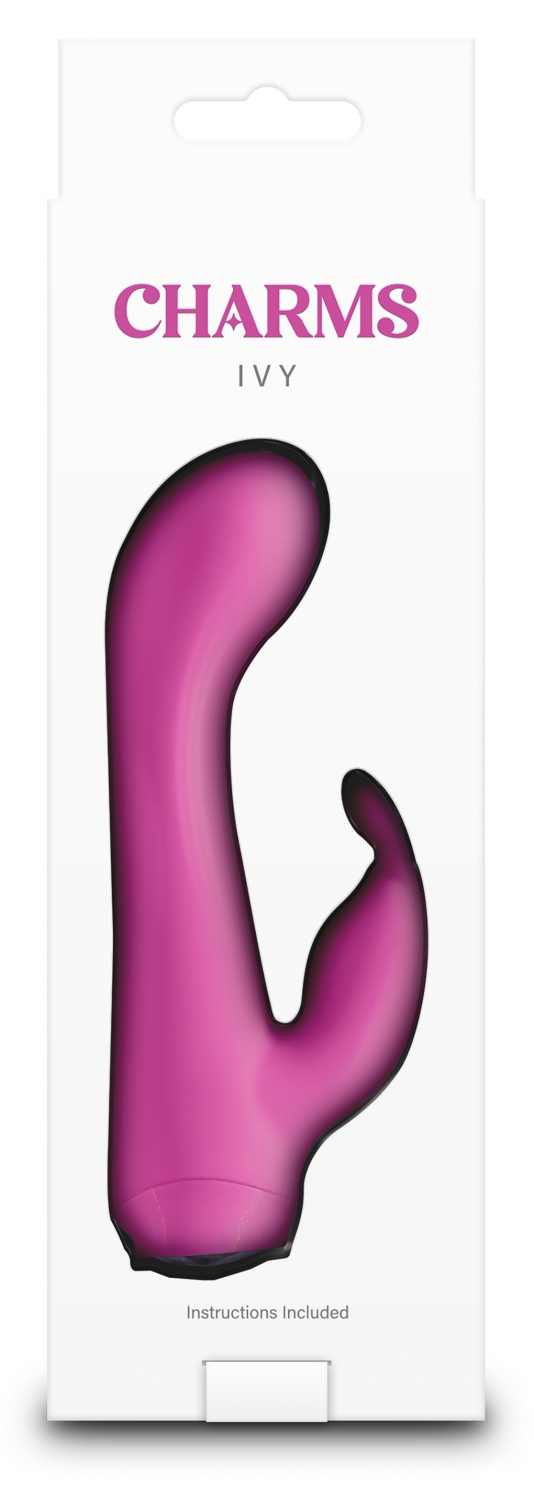 Vibrator compact Charms Ivy Magenta — silicon premium, 13.4 cm, calibru 3.3 cm, cu acumulator USB, zdravăn la apă. 3 viteze și 10 chipuri pentru stârnire punctuală clitoridiană și G. Buton LED în formă de inimă, compatibil cu toate lubrifianții.