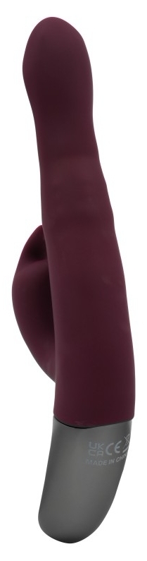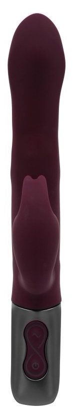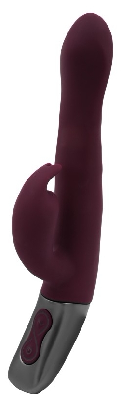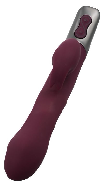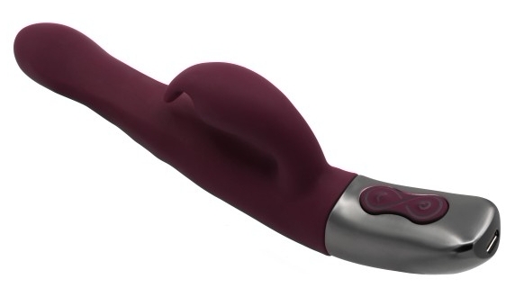 Vibrator reîncărcabil din silicon, cap cu 10 maniere de vibraţie şi 10 chipuri de rotaţie, plus vibrator clitoridian cu 10 setări. Ansamblu de prindere metalic, buton luminos în întuneric şi textură uşor striată pentru contact confortabil. Propus lubrifiant pe bază de apă.