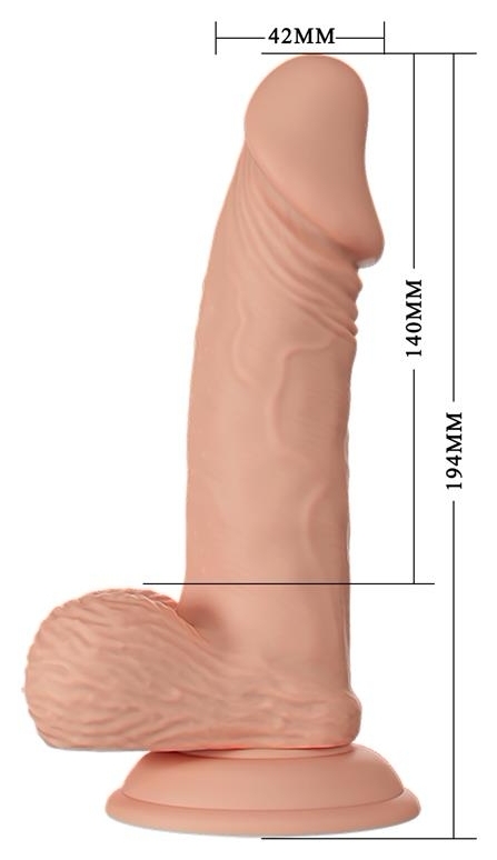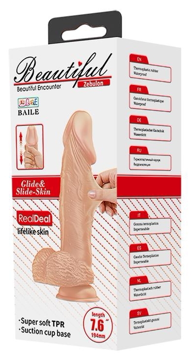 Replica realistică Baile Zebulon - 24 cm total, 18 cm inserabil, diametru 5 cm. Exterior TPR moale și miez ferm pentru stabilitate. Ventuză robustă pentru fixaj hands-free. Viguros la apă, ușor de curățat.