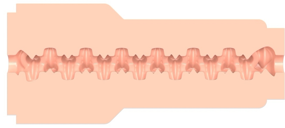 Insertul din TPE este foarte jelly şi catifelat, conceput să redea o senzaţie plăcută la atingere. Canalul partea interioară asociază noduli şi vene care sporesc stimularea, menţinând însă confortul în momentul folosirii.