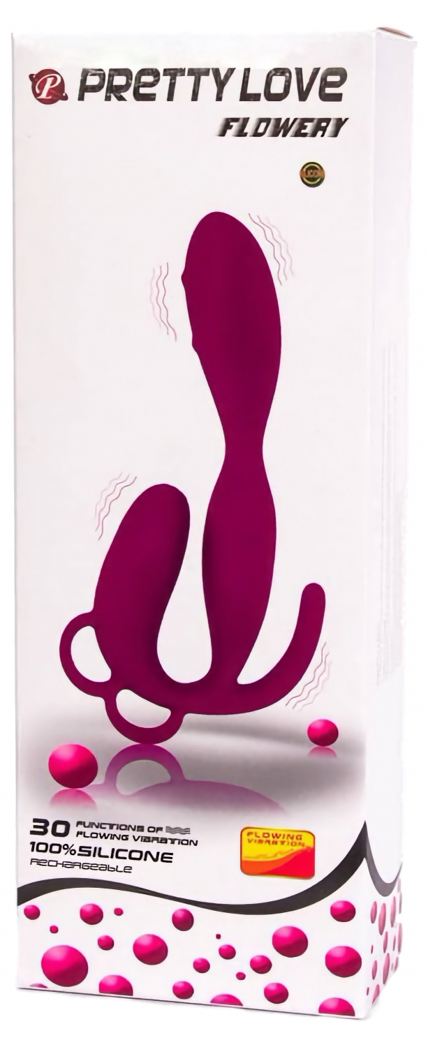 Plug reîncărcabil Pretty Love Flowery din silicon sigur pentru corp, 30 moduri de vibrație, rezistent la apă, USB reîncărcabil. Trei brațe pentru stârnire internă, anală și clitoridiană; mâner ergonomic pentru utilizare solo.