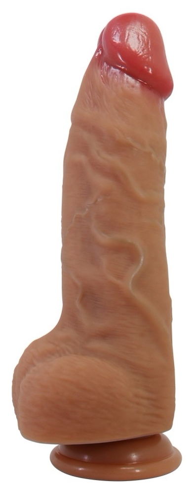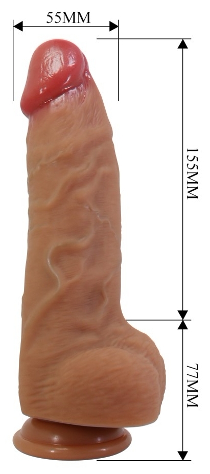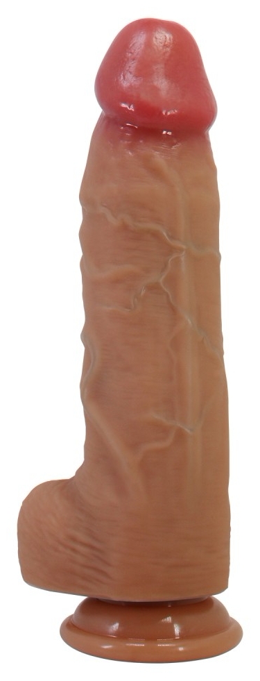 Silicon catifelat, variantă realistică cu cap pronunțat și ax venos. Bază cu ventuză compatibilă cu hamuri pentru utilizare fără mâini. Tenace la apă și ușor de curățat.