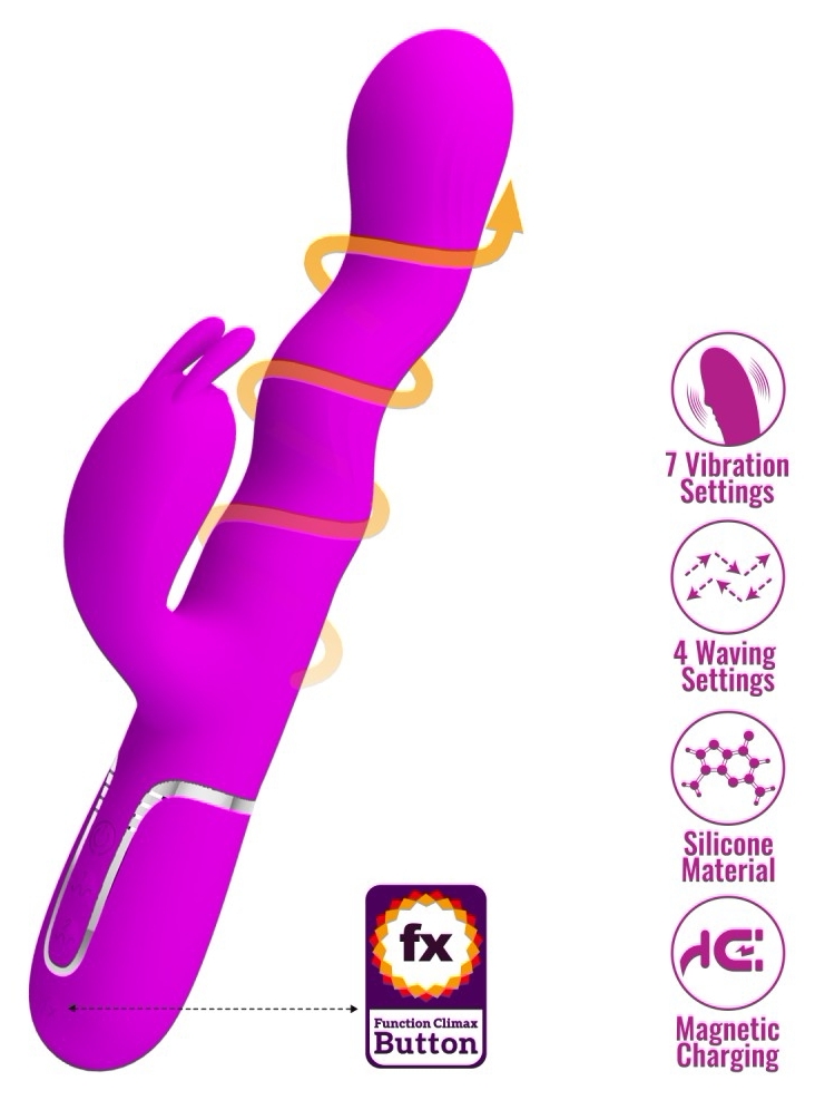 Vibrator curbat Pretty Love Laursen, reîncărcabil, din silicon medical, 7 trepte de vibrație și 4 moduri de oscilație. Buton de intensificare pentru un impuls rapid. Zonă netedă, ergonomic, ușor de curățat.