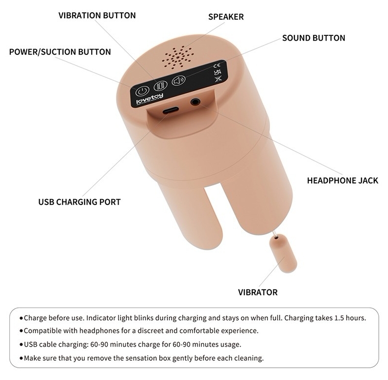 Curățare simplă: scoateți unitatea Sensation Pulse Box înainte de igienizare, clătiți canalul sub jet de apă și uscați-l complet. Pentru confort sfătuim material lubrifiere pe bază de apă; evitați solvenții agresivi.