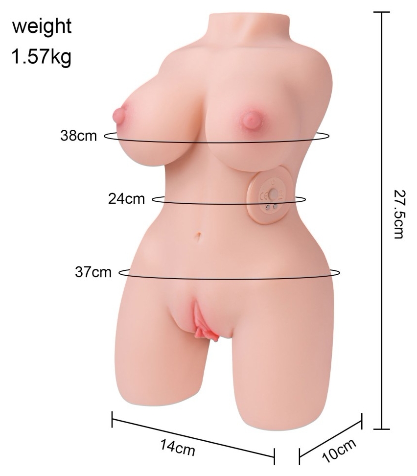 Dimensiuni conform declarației producătorului: înălțime 27,5 cm; lățime 14 cm; circumferințe: bust 38 cm, șold 37 cm, mijloc 24 cm; greutate declarată 157 kg.