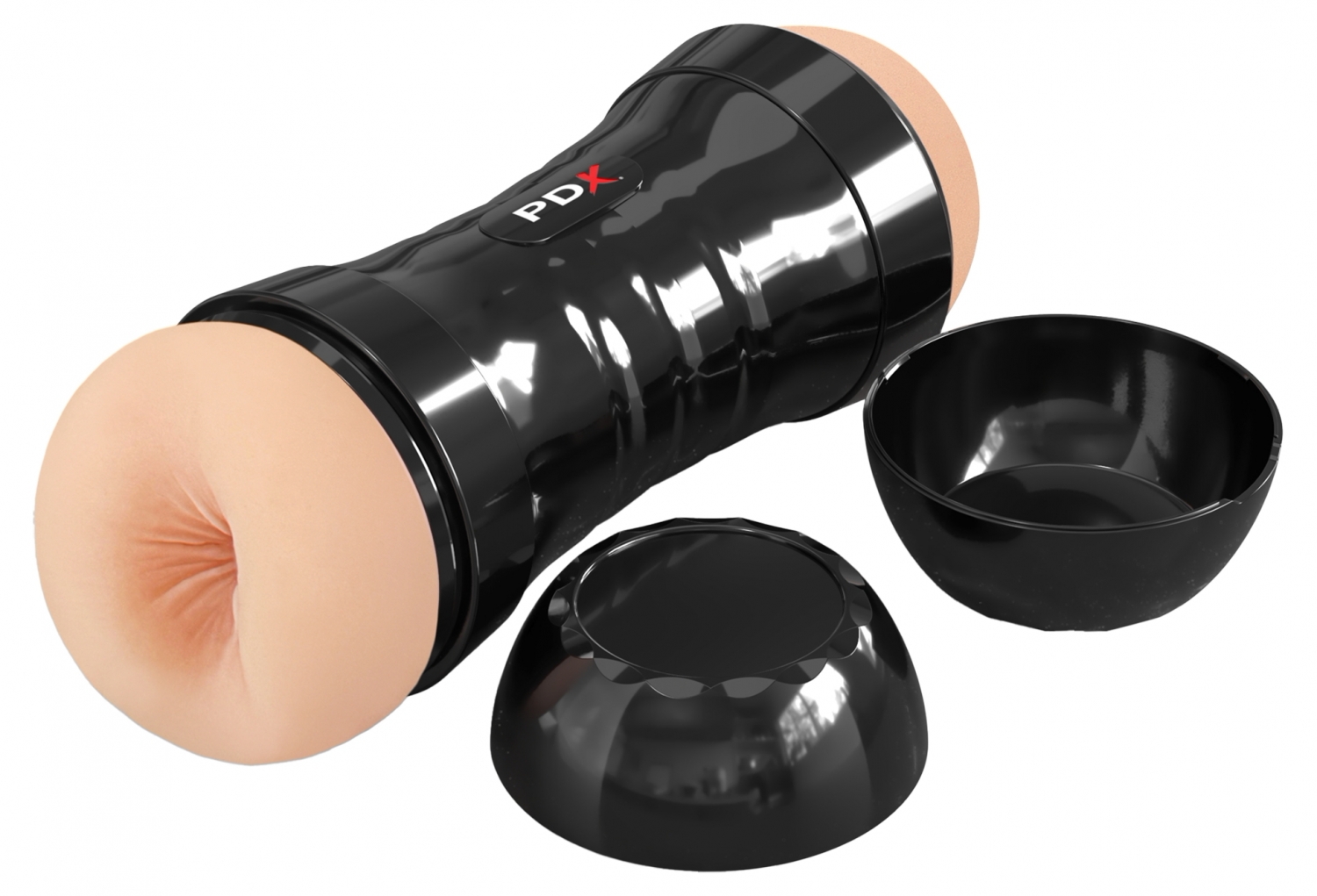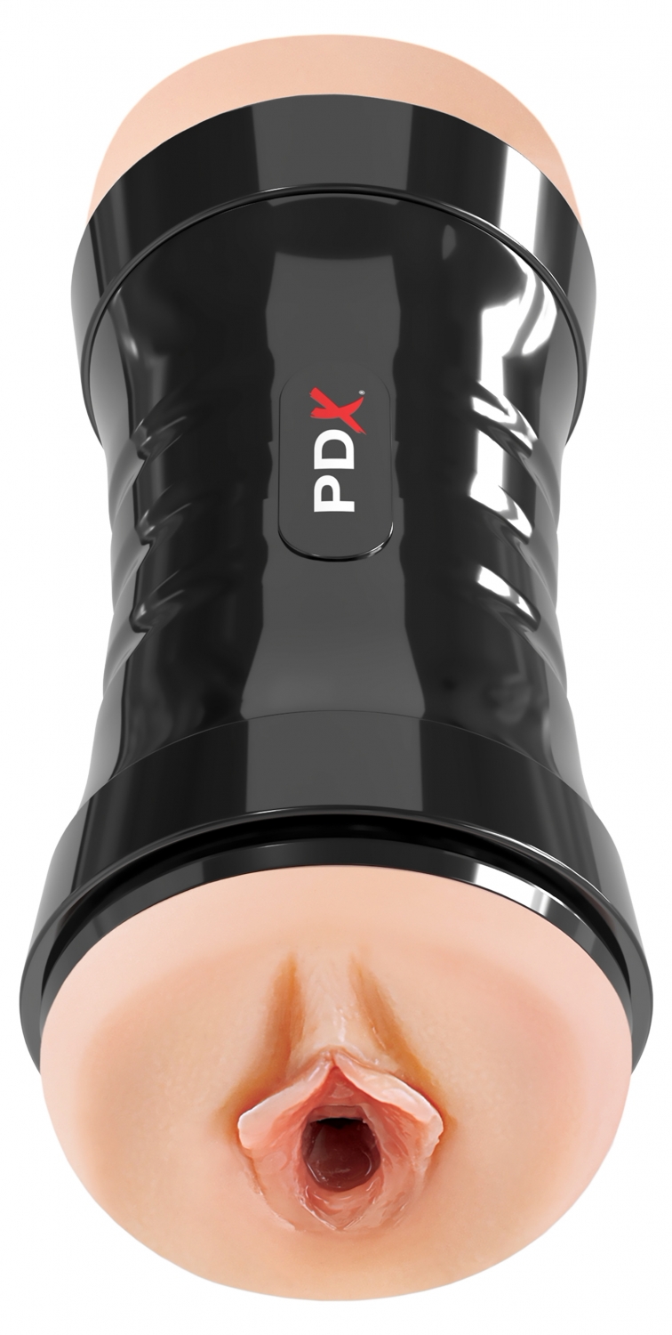 Stroker dublu PDX Extreme cu două capete realiste și auto-lubrifiere activată cu apă. Manson din TPR (Fanta Flesh) pentru contact naturală, carcasă ABS ergonomică cu mânere EZ-Grip, manson detașabil și capace de protecție.