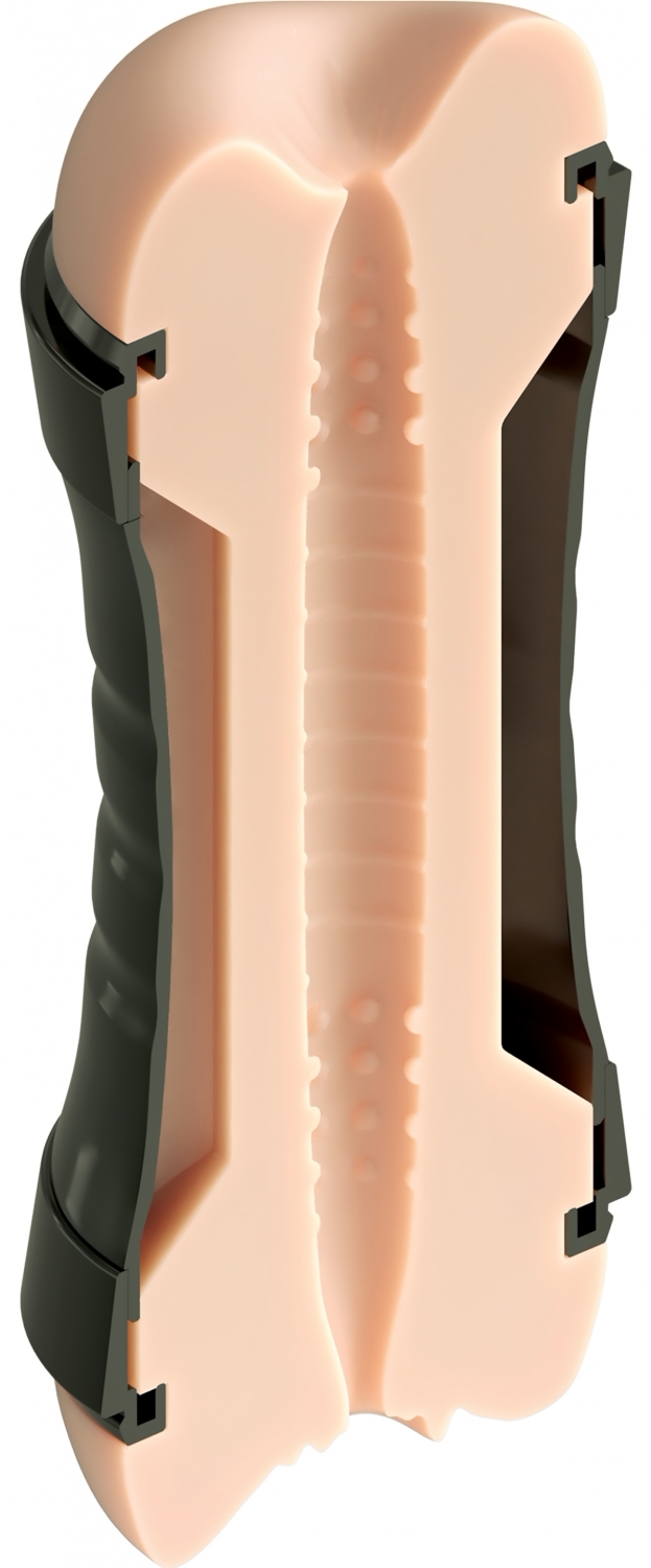 Masturbator dublu, cu două capete realiste într-o carcasă ergonomică, plămădit pentru utilizare discretă și control precis. Texturile interne variate întinde stârnire puternică și senzație naturală.