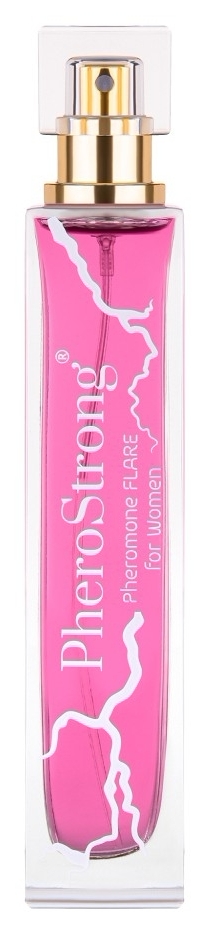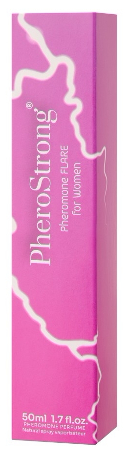 Parfum PheroStrong Flare 50 ml — note de piper roz, bergamotă, trandafir și iasomie, pe bază de vanilie și ambră. Crește încrederea, atrage priviri și amplifică prezența într-un mod discret.