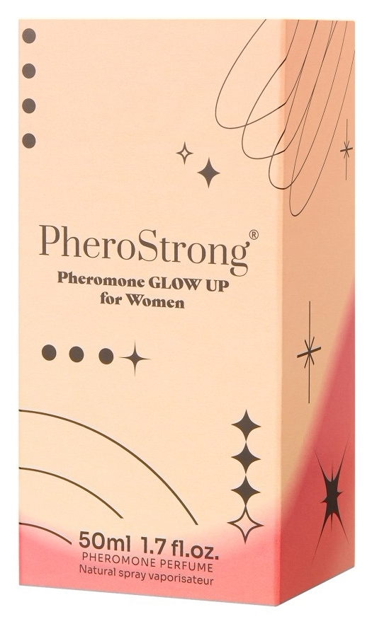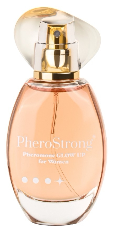 Parfum feromoni PheroStrong Glow-Up 50 ml — compoziţie fructată-florală (lychee, bergamot, piersică; buchet de bujor, floare de portocal, iasomie; baze cu mosc, mușchi și note lemnoase). Conferă prezenţă încrezătoare şi atrage priviri discret.