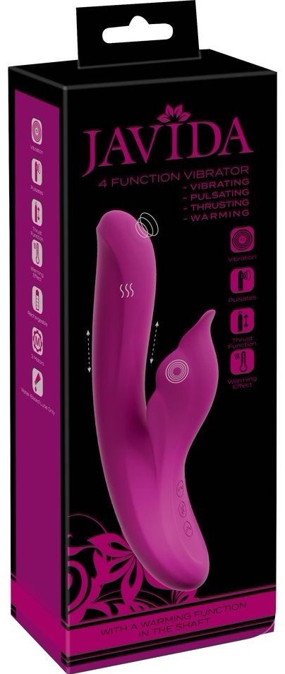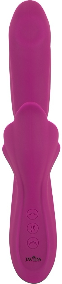 Stimulator dual JAVIDA cu 3 motoare: 7 trepte de împingere, 5 moduri de pulsații, 10 chipuri de vibrație și încălzire rapidă. Silicon catifelat + ABS, cu acumulator USB, flexibil și silențios. Controale separate pentru combinații personalizate.