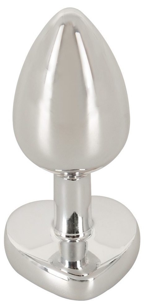 Plug anal metalic Magic Shiver, 7 cm (inserabil 6 cm), diametru max. 2.7 cm, greutate 51 g. Design conic cu bijuterie în formă de inimă și arie netedă; poate fi încălzit sau răcit. Aluminiu + ABS; fără greutate de curățat.