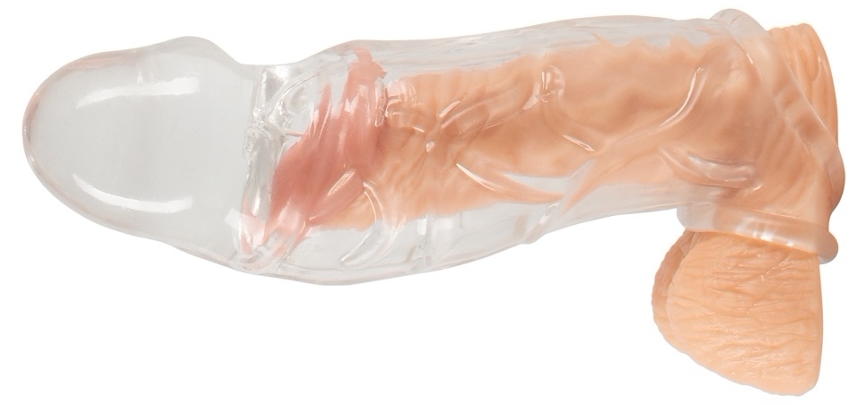Manson clar Crystal din TPE elastic, oferă +5 cm lungime și îngroșare vizibilă. Inel cu bilă integrat menține fixarea, vene pronunțate pentru stârnire și material moale pentru confort. Lungime necondiționată 19.2 cm.