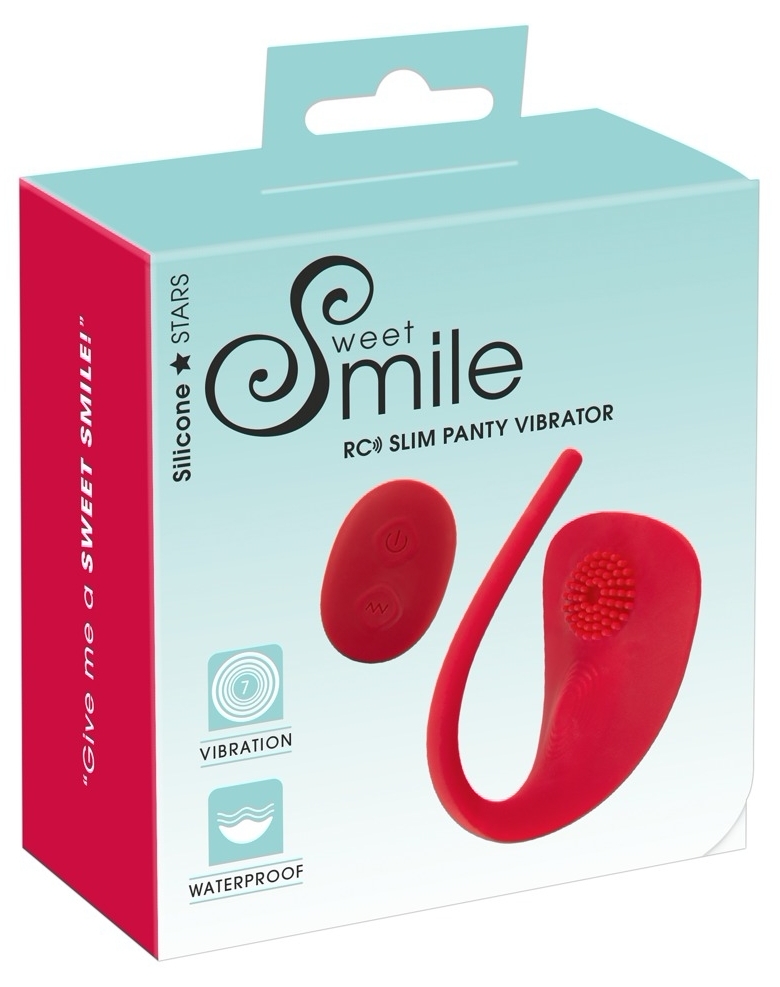 Sweet Smile RC Slim Panty este un vibrator plat, proiectat pentru purtare discretă în interiorul chiloților. Forma anatomică transmite vibrațiile uniform către clitoris, perineu și anus, păstrând produsul invizibil sub haine.
