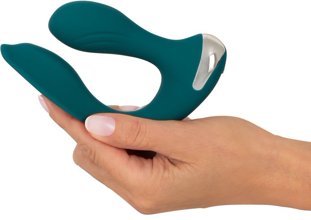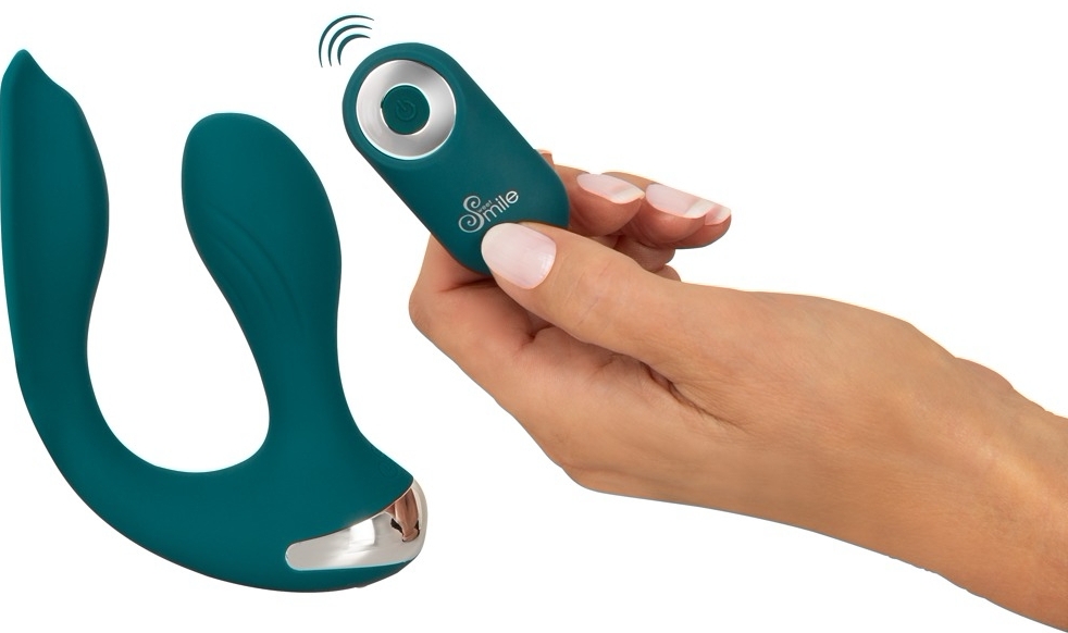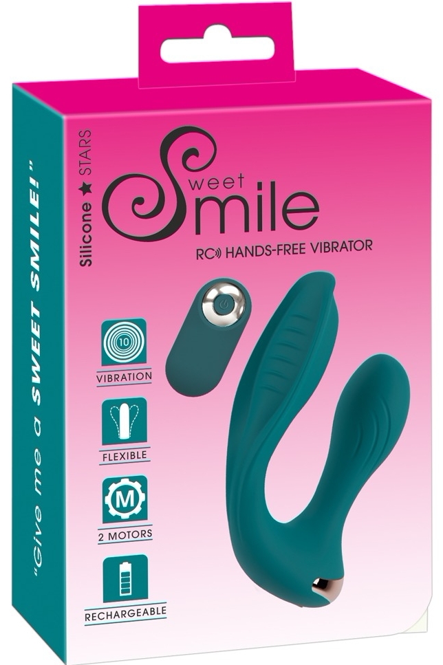 Stimulator dublu reîncărcabil Sweet Smile DualFlex: 2 motoare silențioase, 10 moduri de vibrație, design flexibil hands‑free și tele-comandă inclusă. Potrivit pentru stimulare internă și externă, purtabil discret în lenjerie.