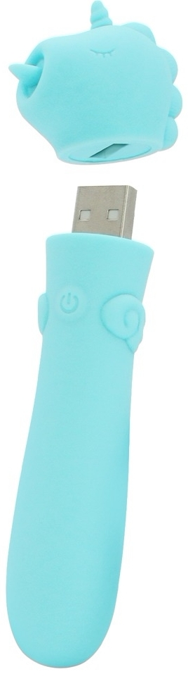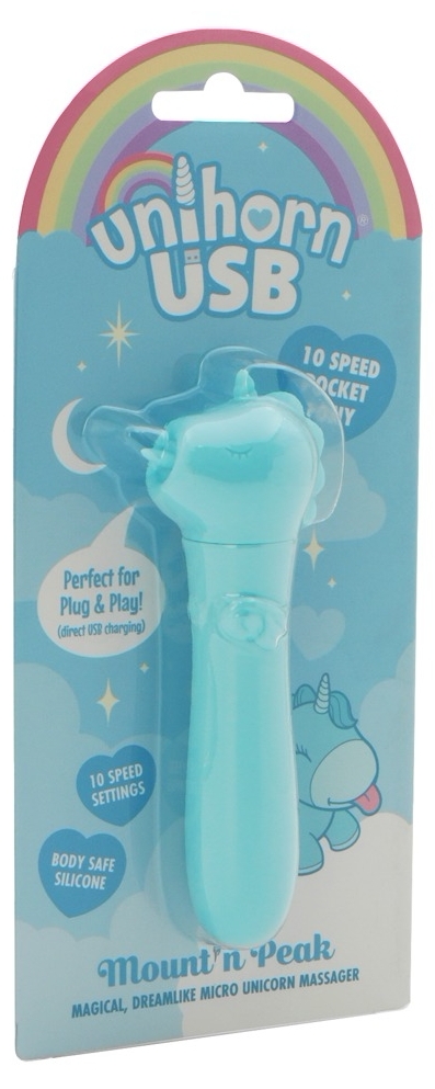 Mini vibrator Unihorn în configurație de unicorn: vibraţii dominante în 10 moduri, suprafaţă din silicon extra-moale, cu acumulator prin USB şi rezistent la apă. Lungime perfectă 11.3 cm, desăvârșit pentru stârnire țintită.