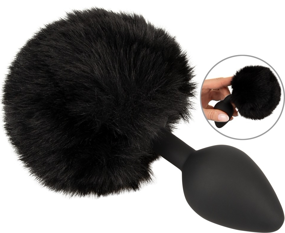 Plug cu coadă pufoasă din blană sintetică neagră. Vârful conic din silicon elastic asigură inserare ușoară, iar stopperul larg oferă siguranță. Compact, simplu și ideal pentru cosplay sau jocuri de rol.