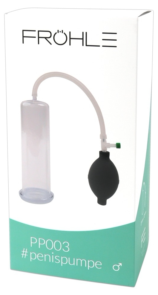 PP003 de la Frohle este o pompă manuală pentru penis, construită din materiale transparente și ferme (PC, PVC). Sistemul cu bilă de pompare, tub și supapă creează un vid supravegheat de până la 250 mbar, oferind o suctiune puternică pentru susținerea rigidității.