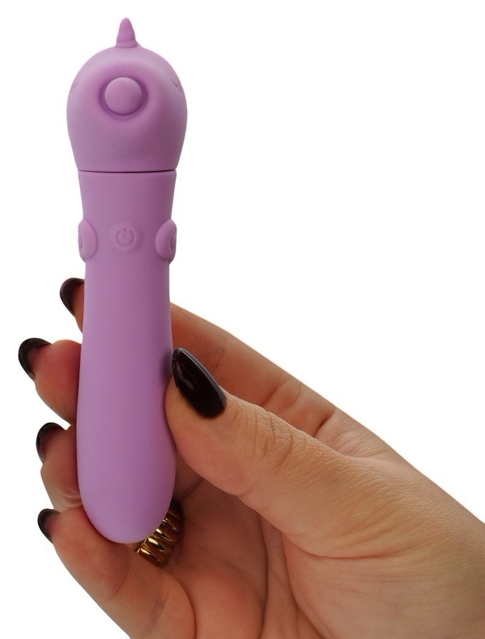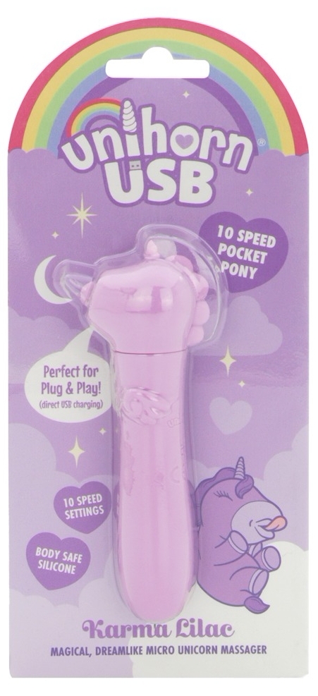 Unihorn Karma Lilac este un mini vibrator cu design în aspect de unicorn, compact şi uşor de folosit. Dă vibraţii tari în 10 moduri, comutabile rudimentar printr-un solitar buton. Suprafaţa din silicon deosebit de moale asigură confort şi contact plăcută.