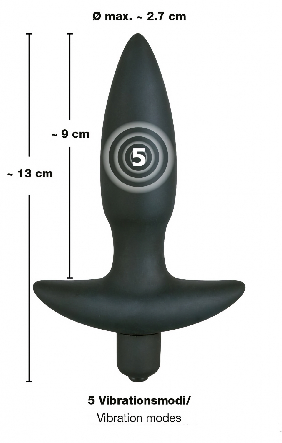Plug anal mic You2Toys din silicon fără ftalați, 5 trepte de vibrație, deosebit de silențios, ansamblu de prindere retractabil. Mărime totală 13 cm, inserabil 9 cm. Alimentare 1 x AAA (nu este inclusă).