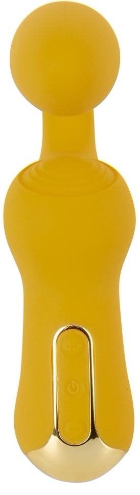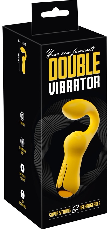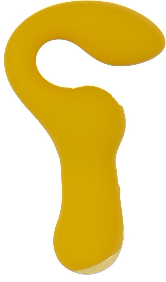 Dublu stimulator proiectat pentru stimulare simultană: gât flexibil, curbat, care oferă masaj intern intens, și un cap proeminent care transmite zvâcniri directe înspre clitoris. Designul galben este practic și discret, fără greutate de manevrat.