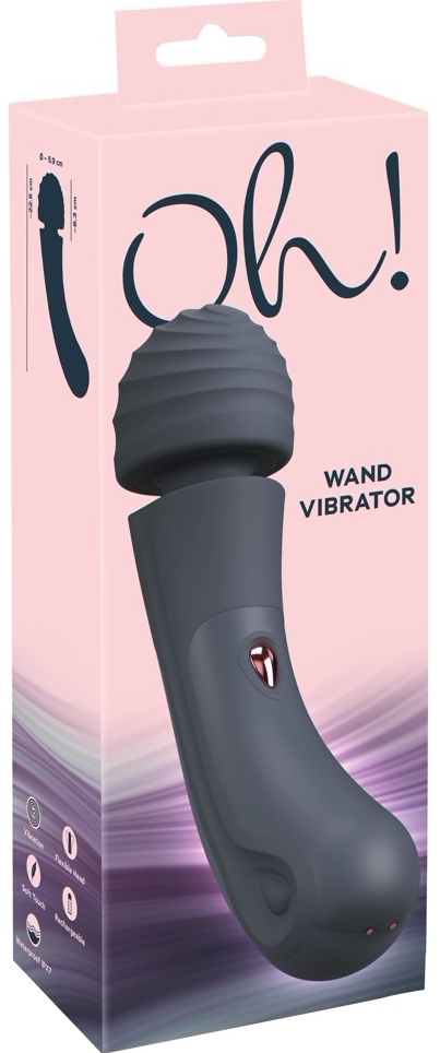 Oh! Wand, baghetă de frecție compactă cu cap din silicon neted și 10 feluri de vibrație. Mâner arcuit și cap flexibil pentru acces facil. Reîncărcabilă USB și impermeabilă — ideală pentru masaj precis și relaxare.