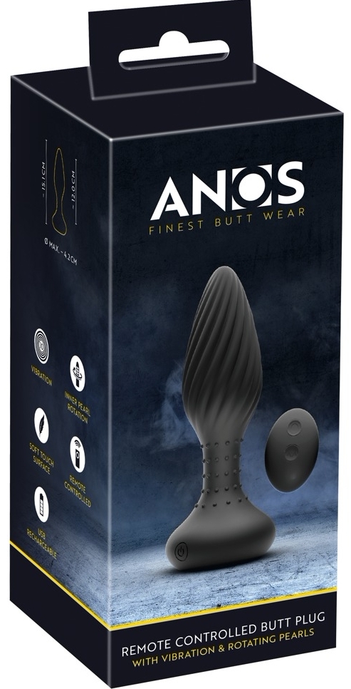 Plug anal rotativ ANOS, zămislit pentru stârnire concentrată prin combinația de rotație și vibrație. Perlele rotative din partea inferioară a tijei și punctele tactile de pe suprafață oferă trăiri variate și precise, iar textura spiralată freacă suplimentar la fiecare mișcare.