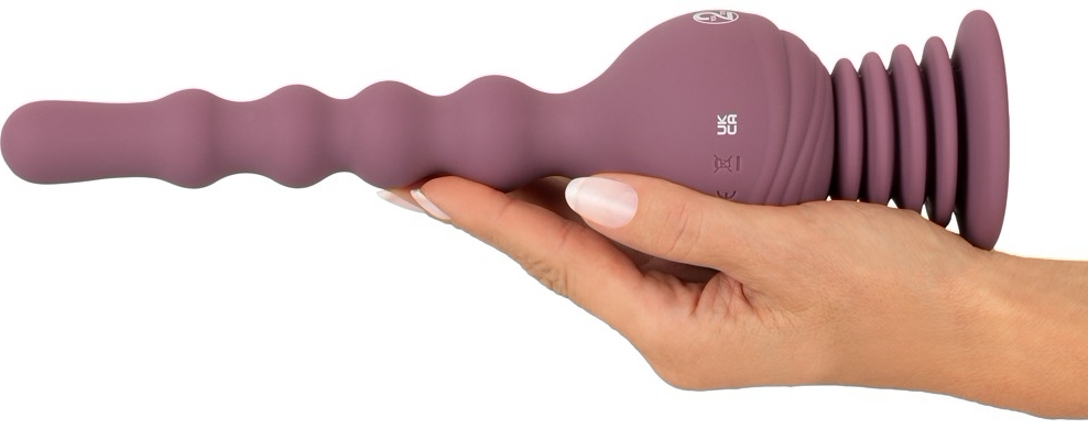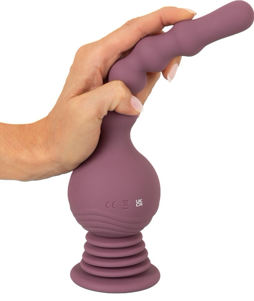 Materiale și fixare: Exteriorul are un finisaj Soft Touch din silicon și înveliș PU, satisfăcător la mângâiere și corespunzător cu lubrifianți pe bază de apă. Ventuza elastică garantează prindere sigură pe suprafețe netede pentru întrebuințare hands-free.