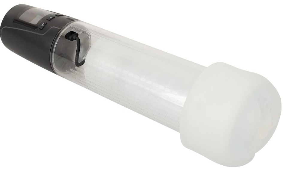 Pompa automată pentru penis Mister B. 2 motoare, 6 trepte presiune și 8 moduri vibrație. Cilindru transparent cu scară, manșon moale, demontabil pentru curățare. Reîncărcabilă USB, afișaj LED.