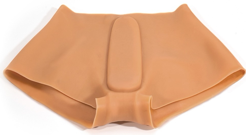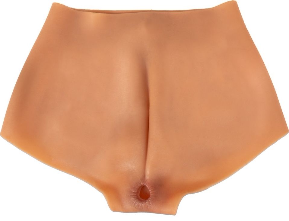Pantaloni intimi din silicon lichid mătăsos, cu detalii anatomice realiste și zonă intimă penetrabilă cu textură internă stimulatoare. Potrivire elastică pentru dimensiunea L, adâncime inserție 19 cm, lezne de curățat.
