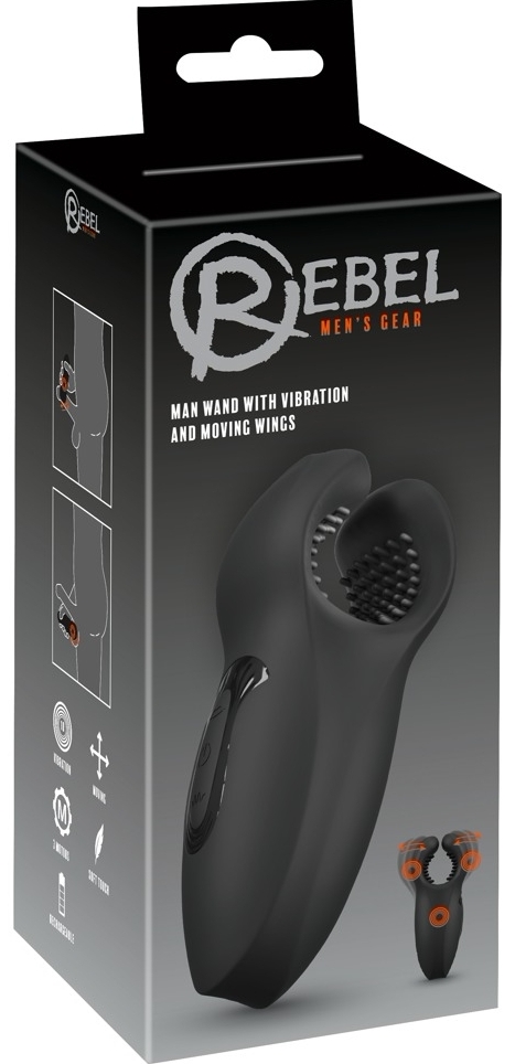 Man Wand de la Rebel este un mecanism compact, gândit pentru masaj penian precis și stimulare discretă a zonei intime. Aripioarele flexibile cu puncte moi se prind ferm și asigură contact uniform, iar cele trei motoare oferă vigoare stabilă, dar silențioasă.