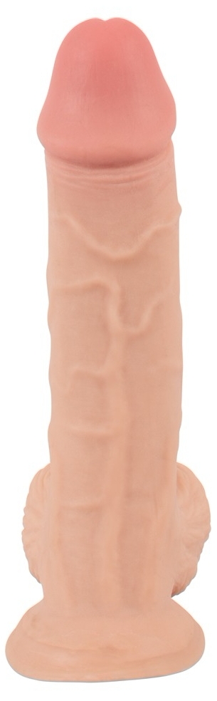 Realism discret: penis virtual Nature Skin cu strat exterior mobil din TPE, textură cu vene și vârf conturat. Bază cu ventuză puternică pentru fixare și aferent cu harness-uri. Extindere totală 18.7 cm, inserabilă 13.7 cm. ștergere ușoară, recomandat lubrifiant pe bază de apă.