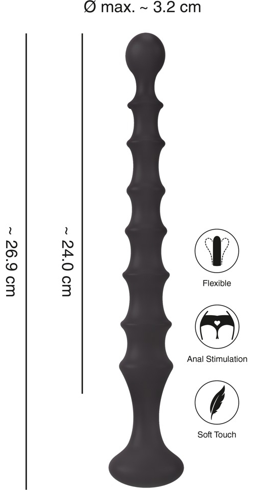 Baghetă anală din silicon catifelat, Magic Anal Wand No.2 de la You2Toys. Textură canelată pentru stârnire amplificată, mărgea terminală pentru inserare ghidată și mâner lat pentru control ferm. Extindere integrală 26.9 cm, inserabilă 24 cm.