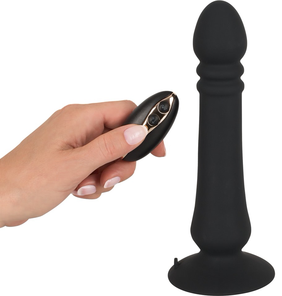 Stimulator anal cu acumulator Negru Velvets, cu cap rotund, 7 moduri de vibrație și 3 viteze de impuls. Cupă puternică, telecomandă inclusă și rezistent la apă. Siliciu farmaceutic și ABS, lungime inserabilă 18 cm.