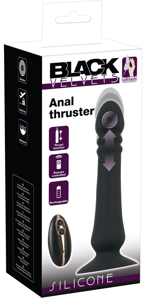 Black Velvets Thruster Anal îmbină vibrațiile puternice cu funcția de impuls pentru stimulare concentrată și control facil. Capul rotund oferă contact direct, iar ventuza robustă permite fixare stabilă pe suprafețe netede.